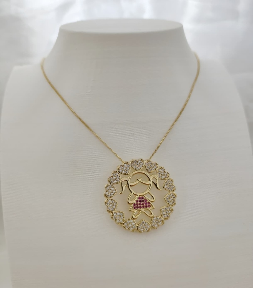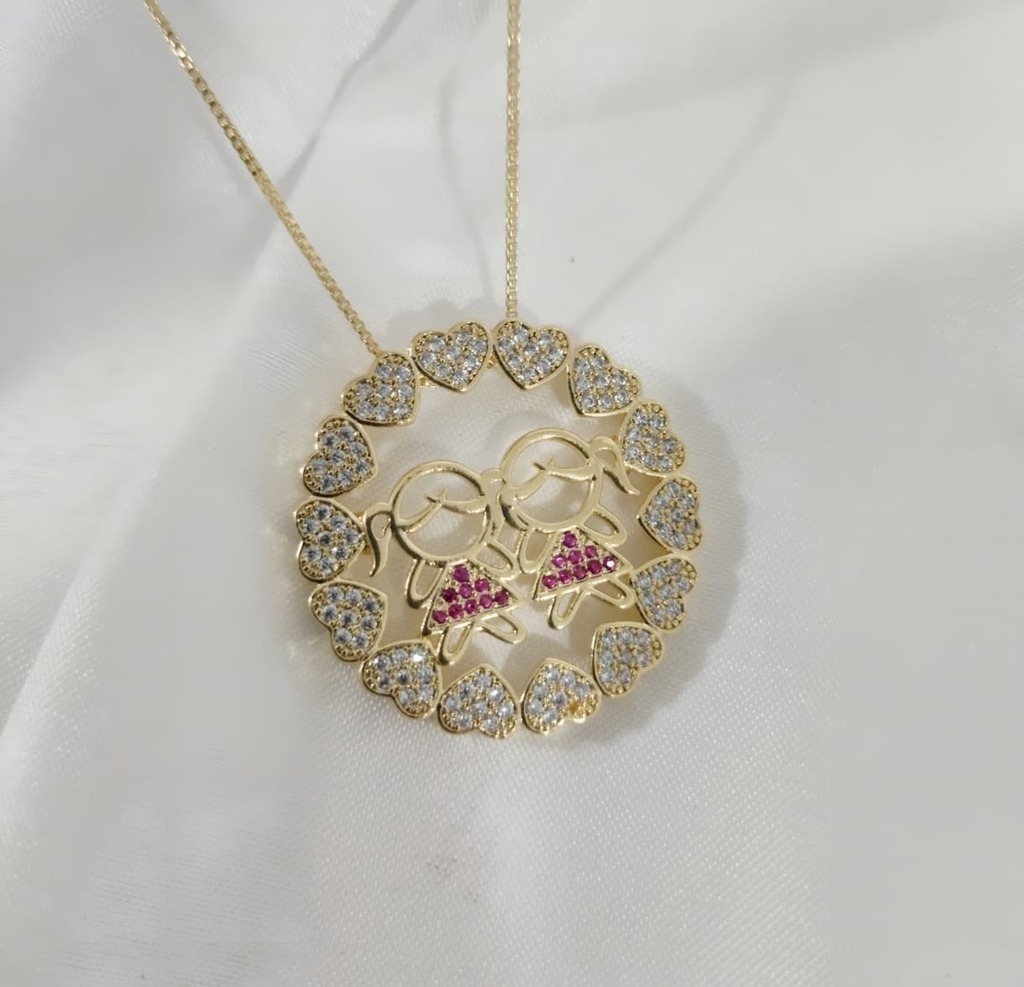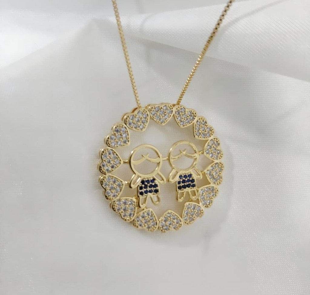 Colar mandala filhos com pedras de zircônia menino (os) menina (as)
