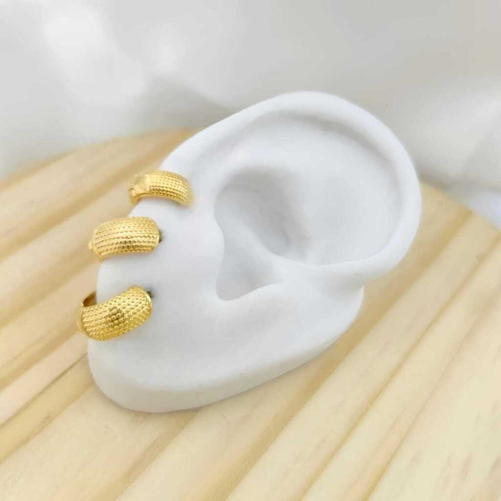 Trio de argola grossa pontilhada folheada a ouro
